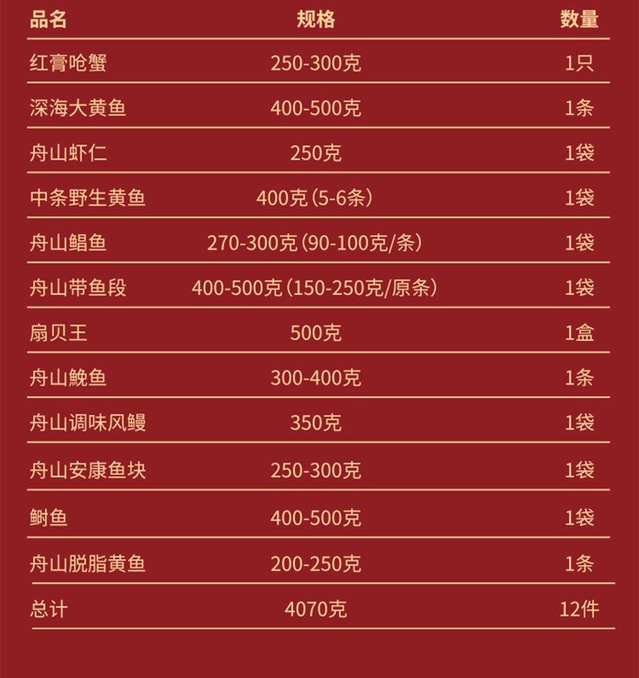 • 品名:舟山甄選海鮮